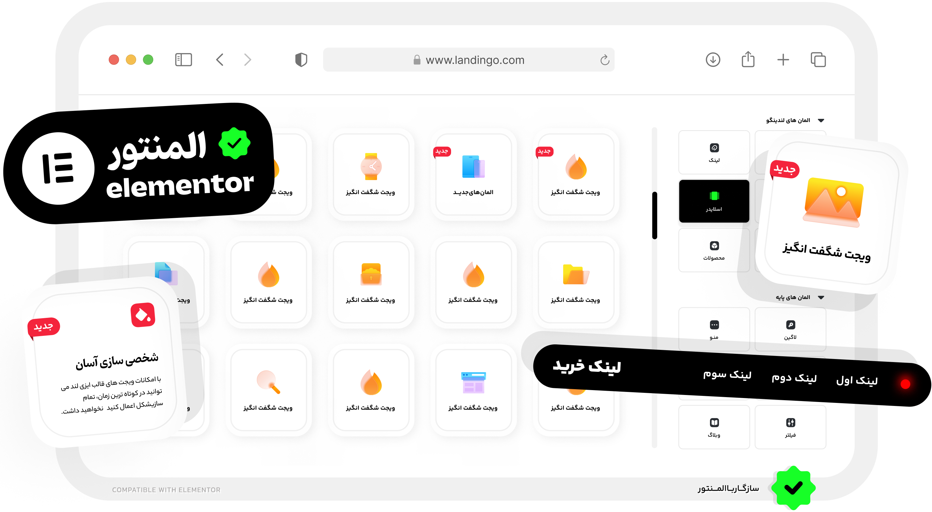 لندینگ ساز بدون نیاز به دانش کدنویسی، با المانهای متنوع، طراحی واکنشگرا و تنظیمات سفارشی حرفهای، این امکان را میدهد که صفحات فرود فوقالعاده و کاربرپسند طراحی کنید. این قالب کاملاً سازگار با المنتور و صفحهسازهای محبوب است و از سرعت بالا و سئوی بهینه برخوردار است تا نرخ تبدیل شما را به حداکثر برساند. اگر به دنبال یک قالب سبک، سریع و حرفهای برای طراحی هر مدل لندینگ هستید، لندینگ ساز همان چیزی است که نیاز دارید!