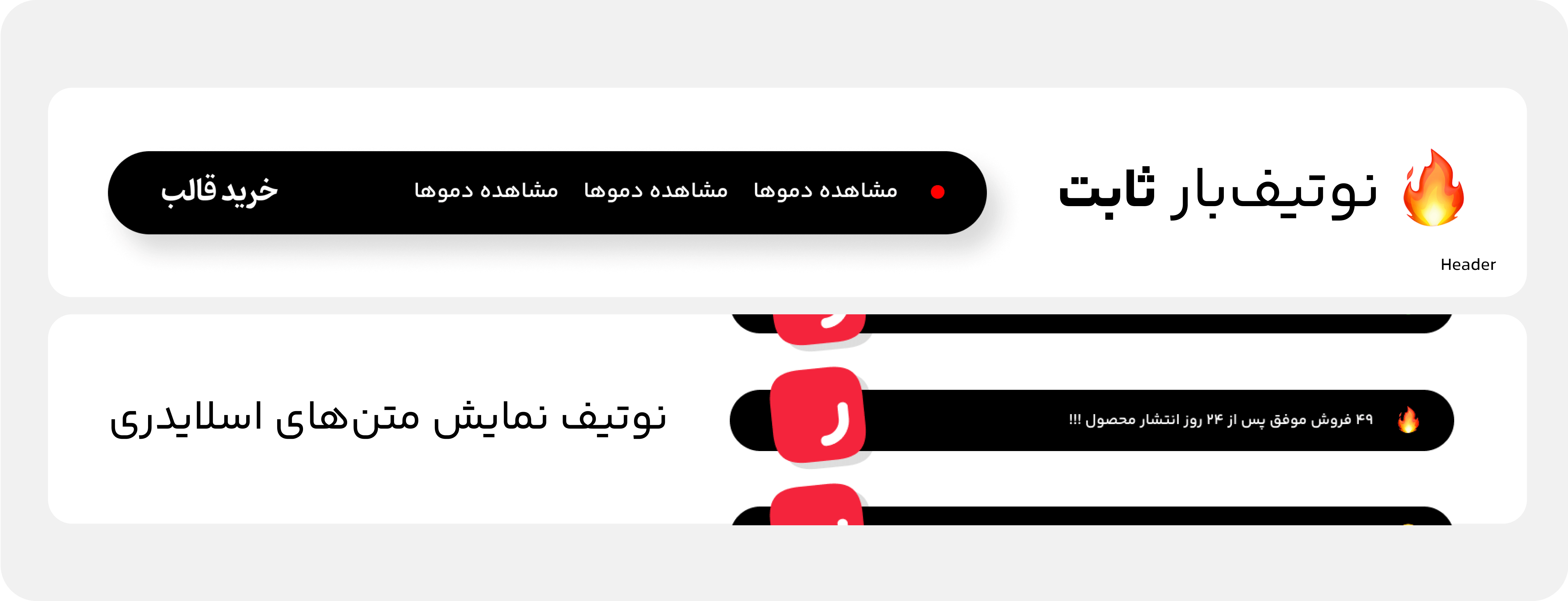 افزودن نوتیف بار مشکی ثابت همراه با انیمیشن مدل بازشو برای هدف مندی بیشتر در معرفی و فروش -
