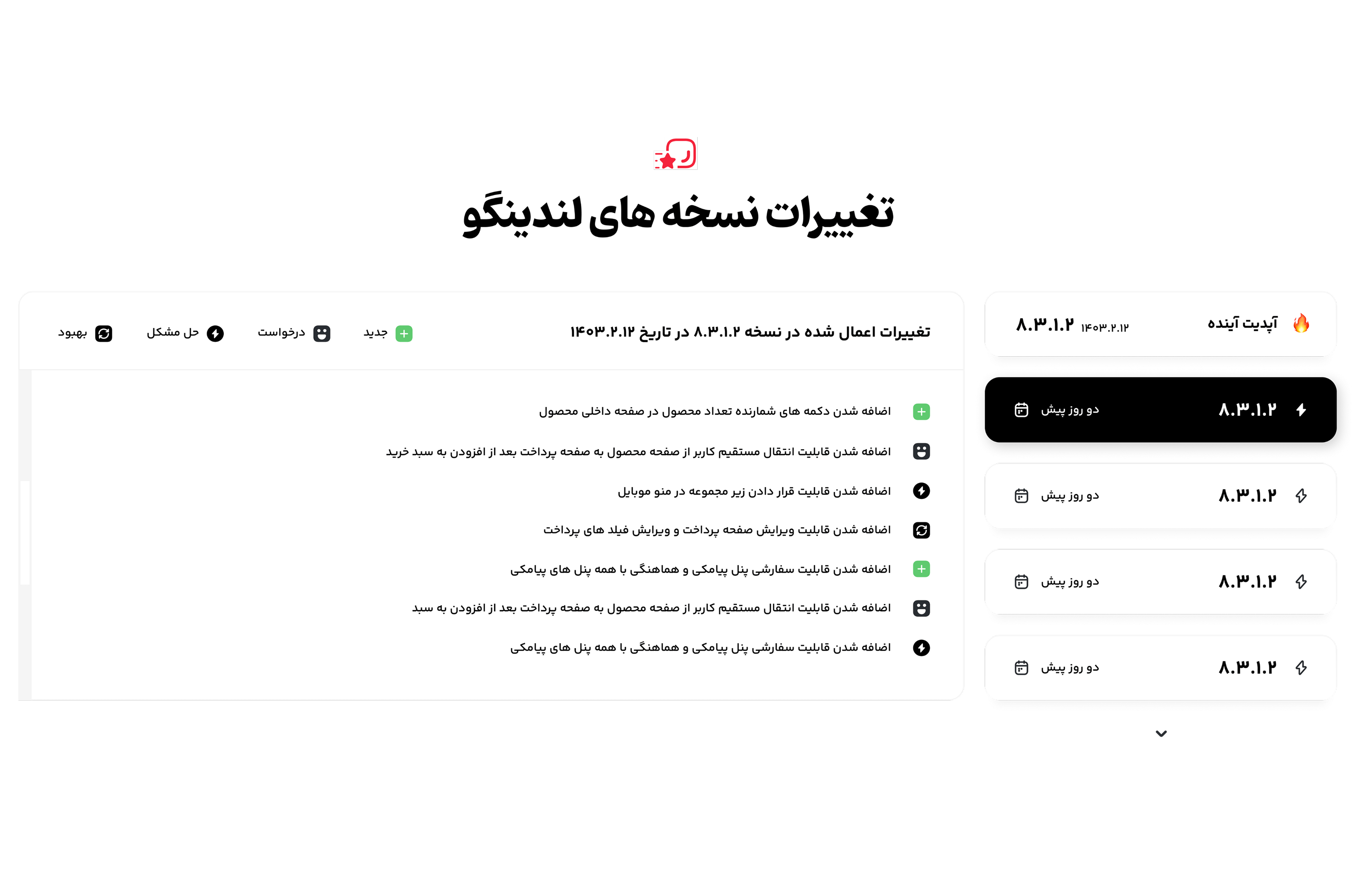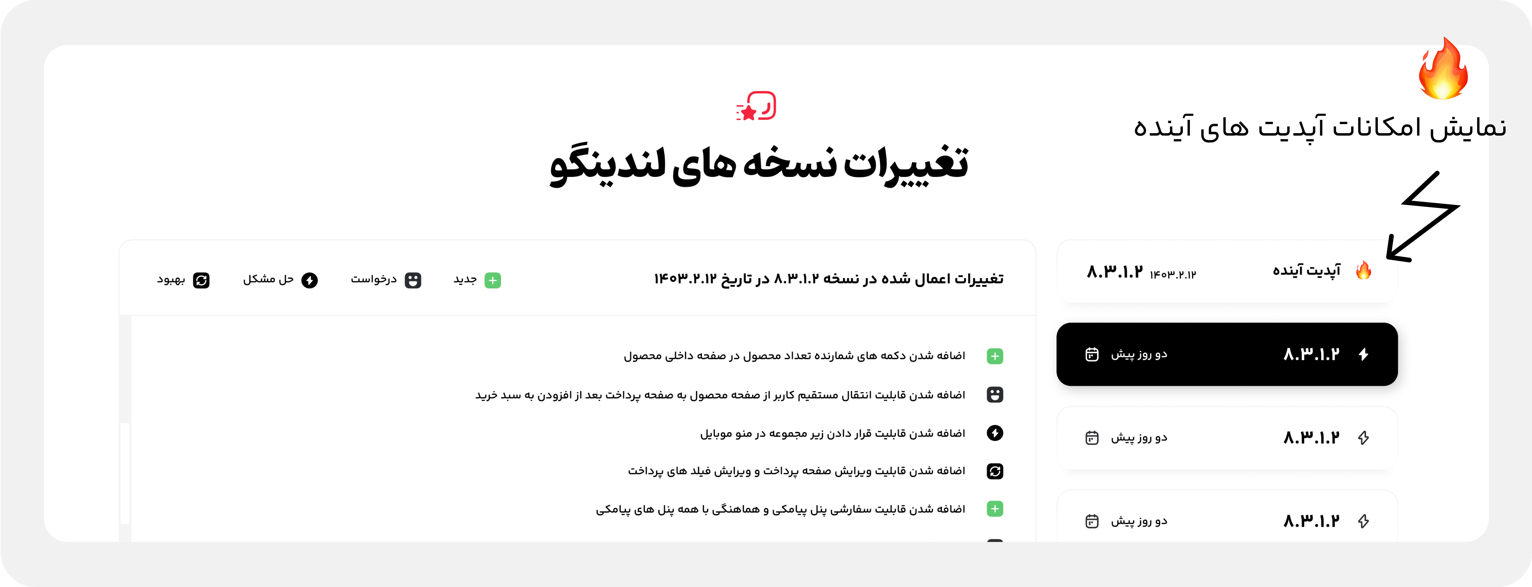 اضافه شدن باکس نمایش نسخه ها همراه با قابلیت تب بندی برای هر ورژن -