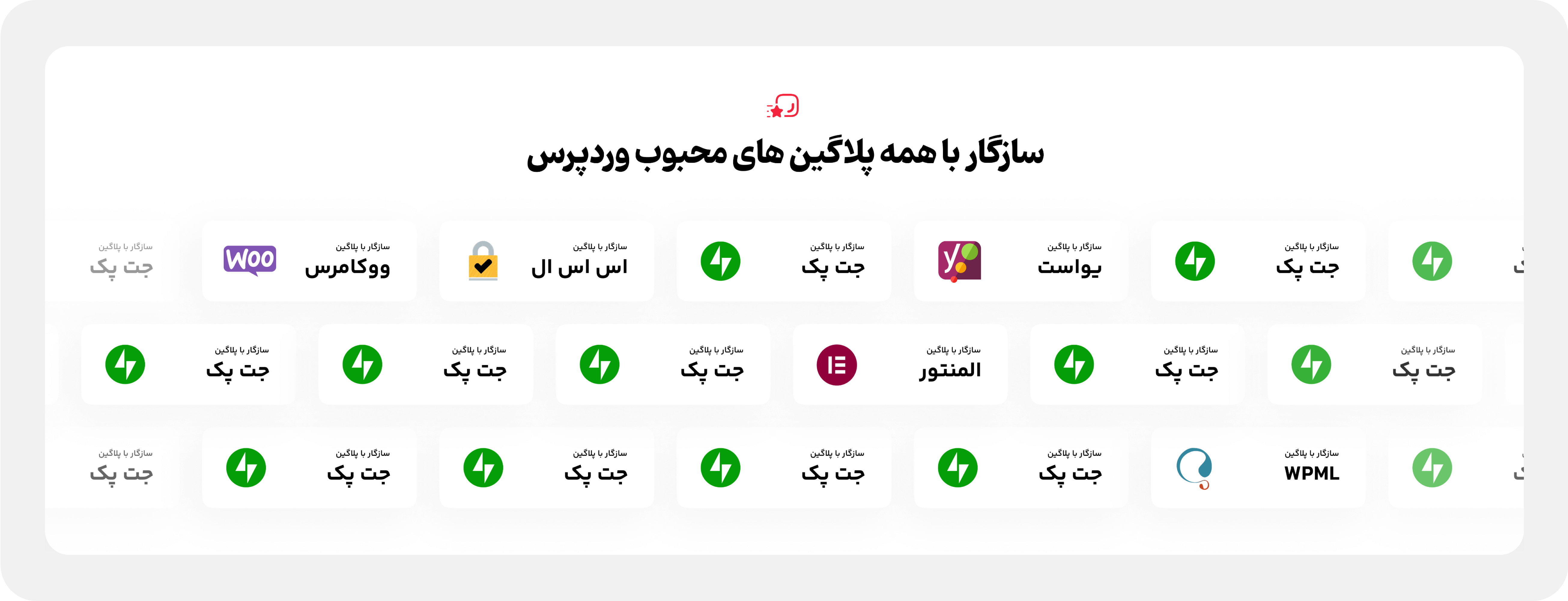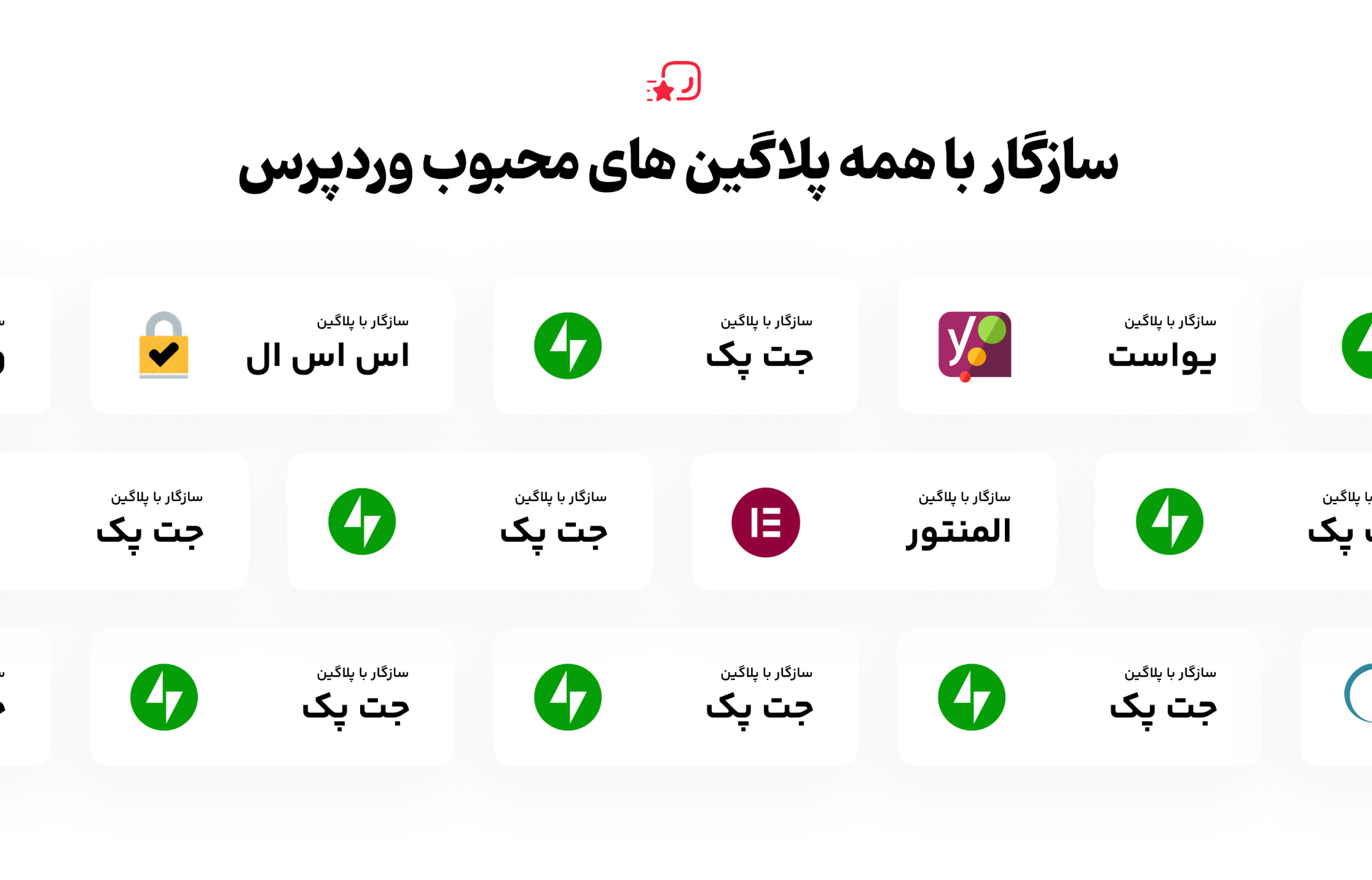 این قالب با تمام افزونههای معروف وردپرس مثل المنتور، ووکامرس، یواست سئو، راکت و فرمسازهای محبوب سازگاره.