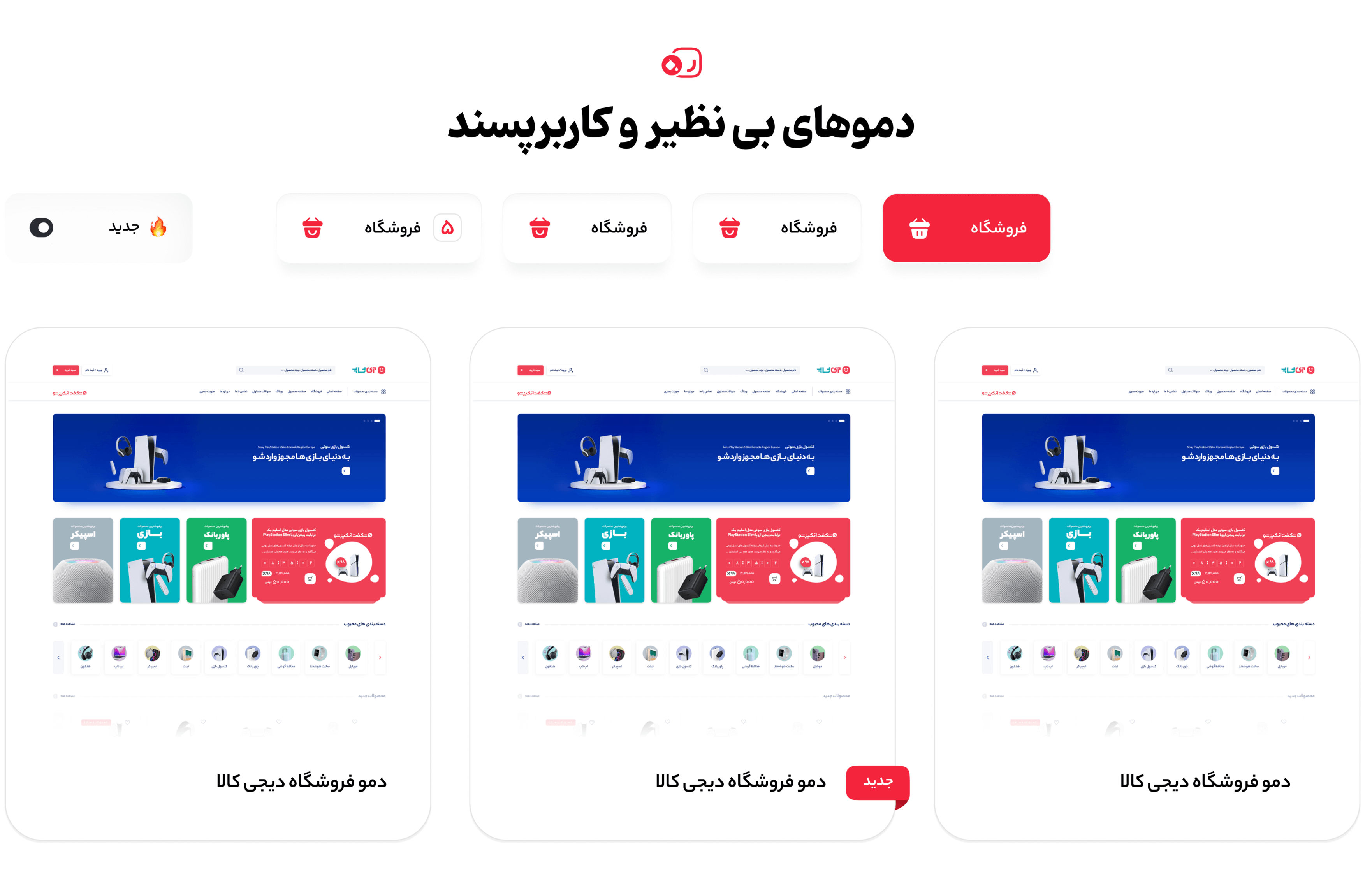 بخش جدید نمایش دمو ها همراه با قابلیت تب بندی همراه با آیکون و همچنین اضافه کردن تصاویر و عنوان دمو ها با لینک دلخواه و همچنین تگ لیبل جدید -