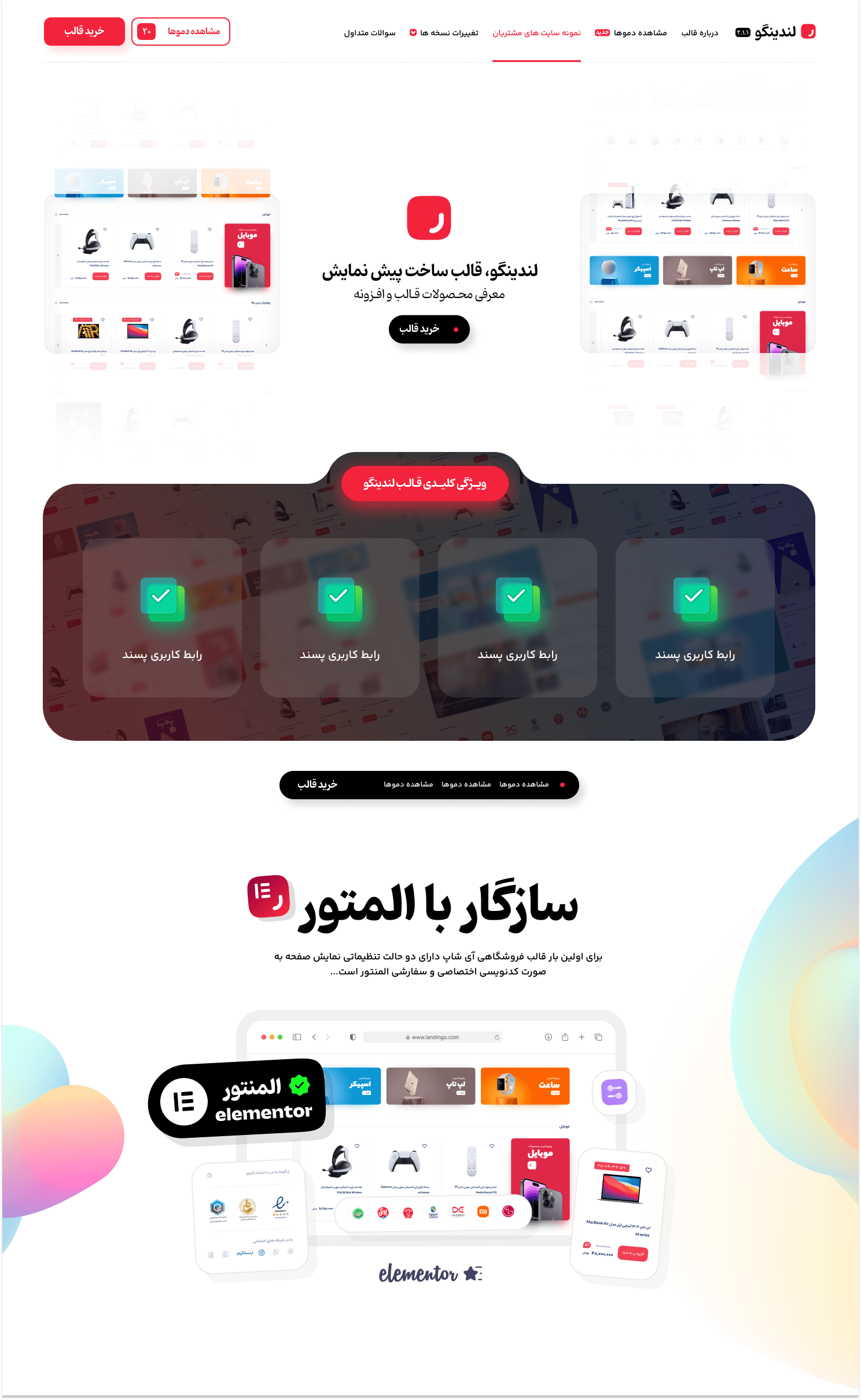 بله ، کلیه المان هایی که در همین صفحه مشاهده میکنید المنتوری است و به راحتی می توانید ویرایش ، سفارشی سازی ، اضافه ، حذف و جابجا کنید . المنتور افزونه محبوب ای است که بر روی قالب لندینگو وجود دارد و نیازی نیست به صورت مجزا تهیه کنید و نسخه پرو نیز بر روی این قالب وجود دارد و نیازی به خرید مجزا این پلاگین نیست .